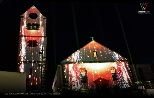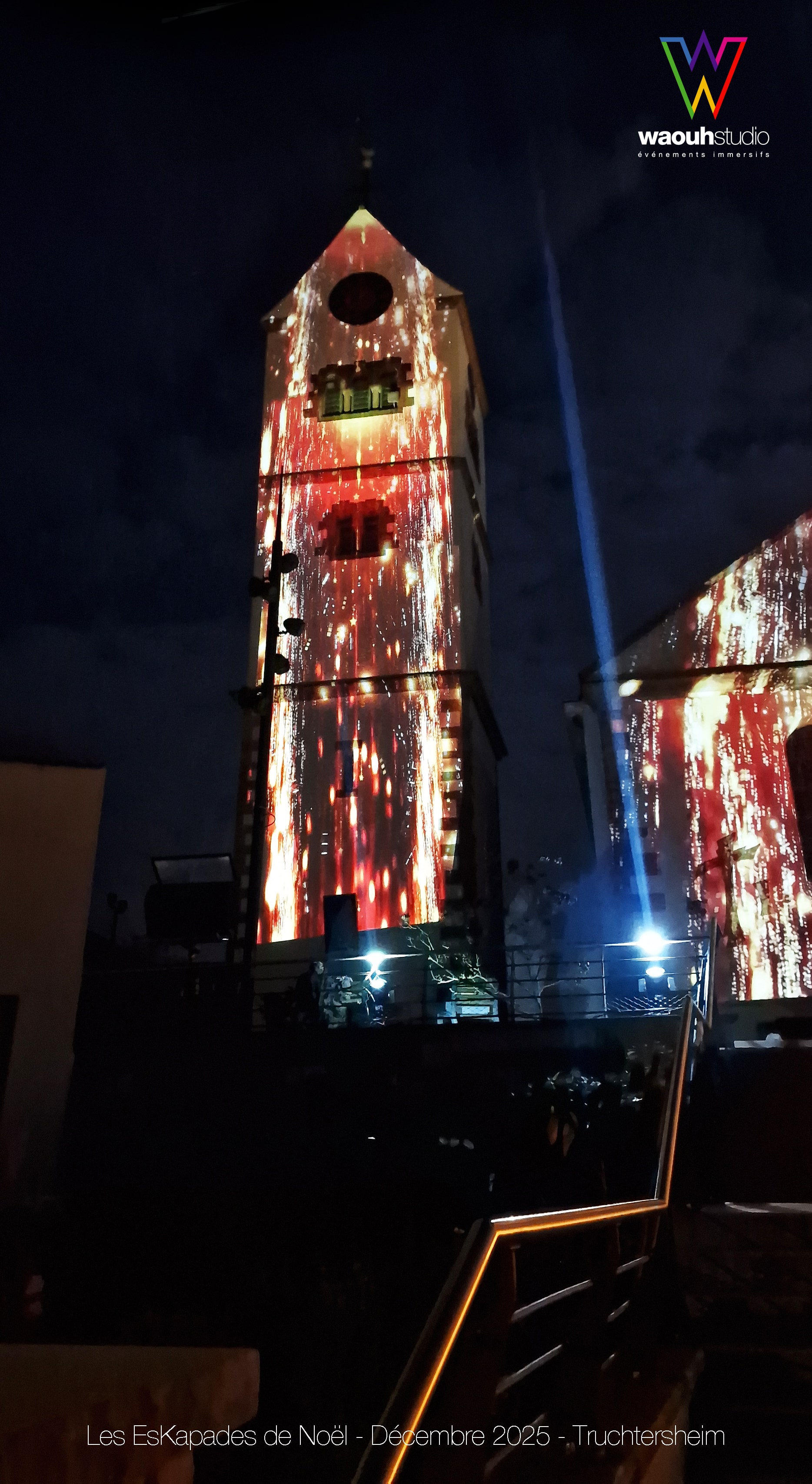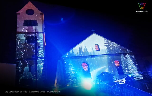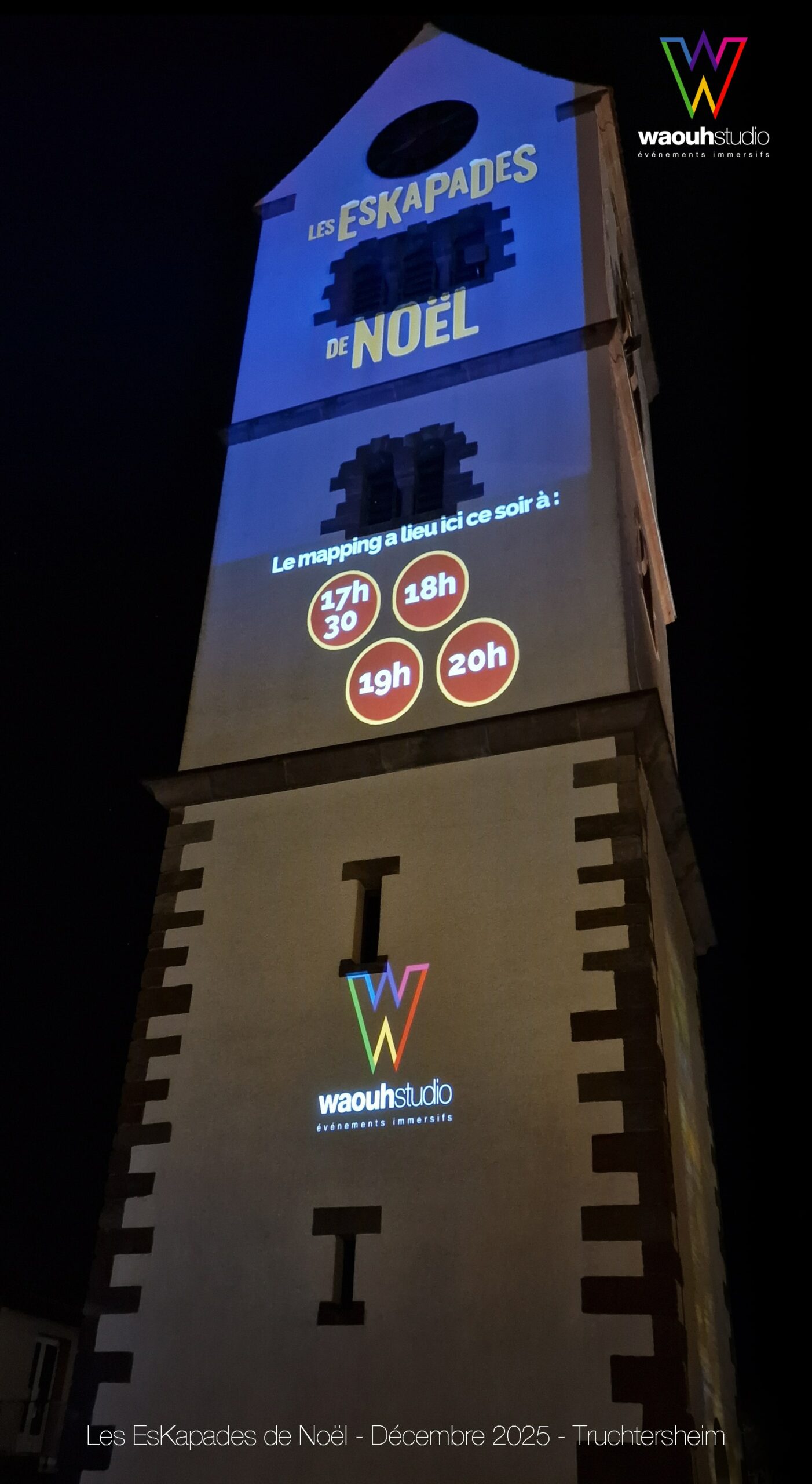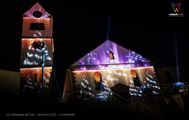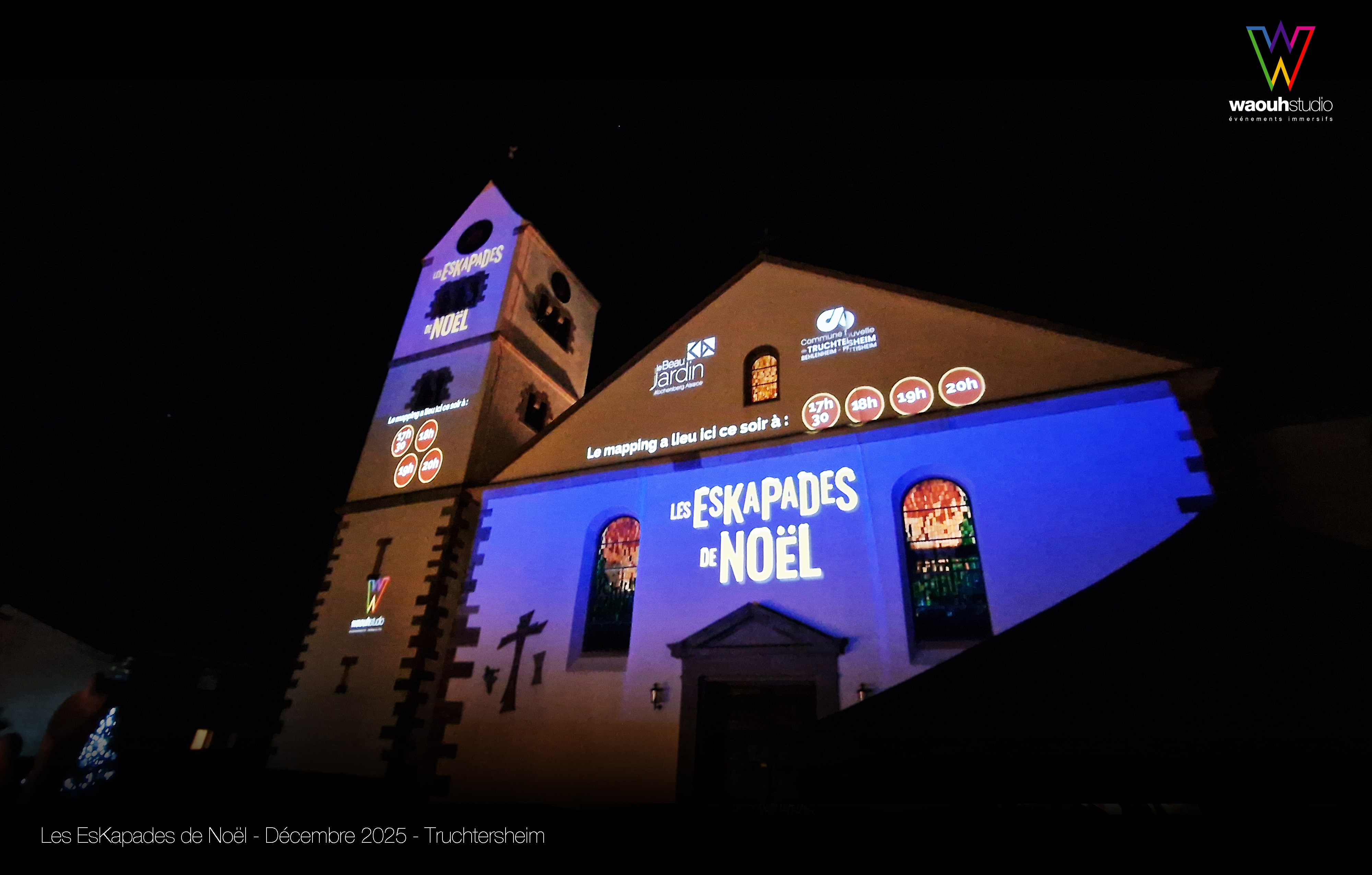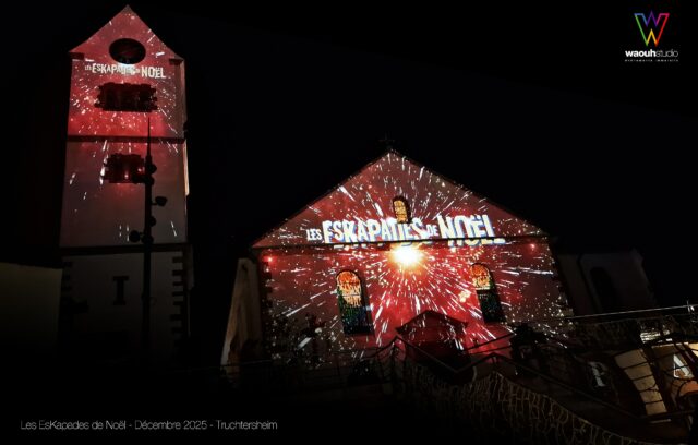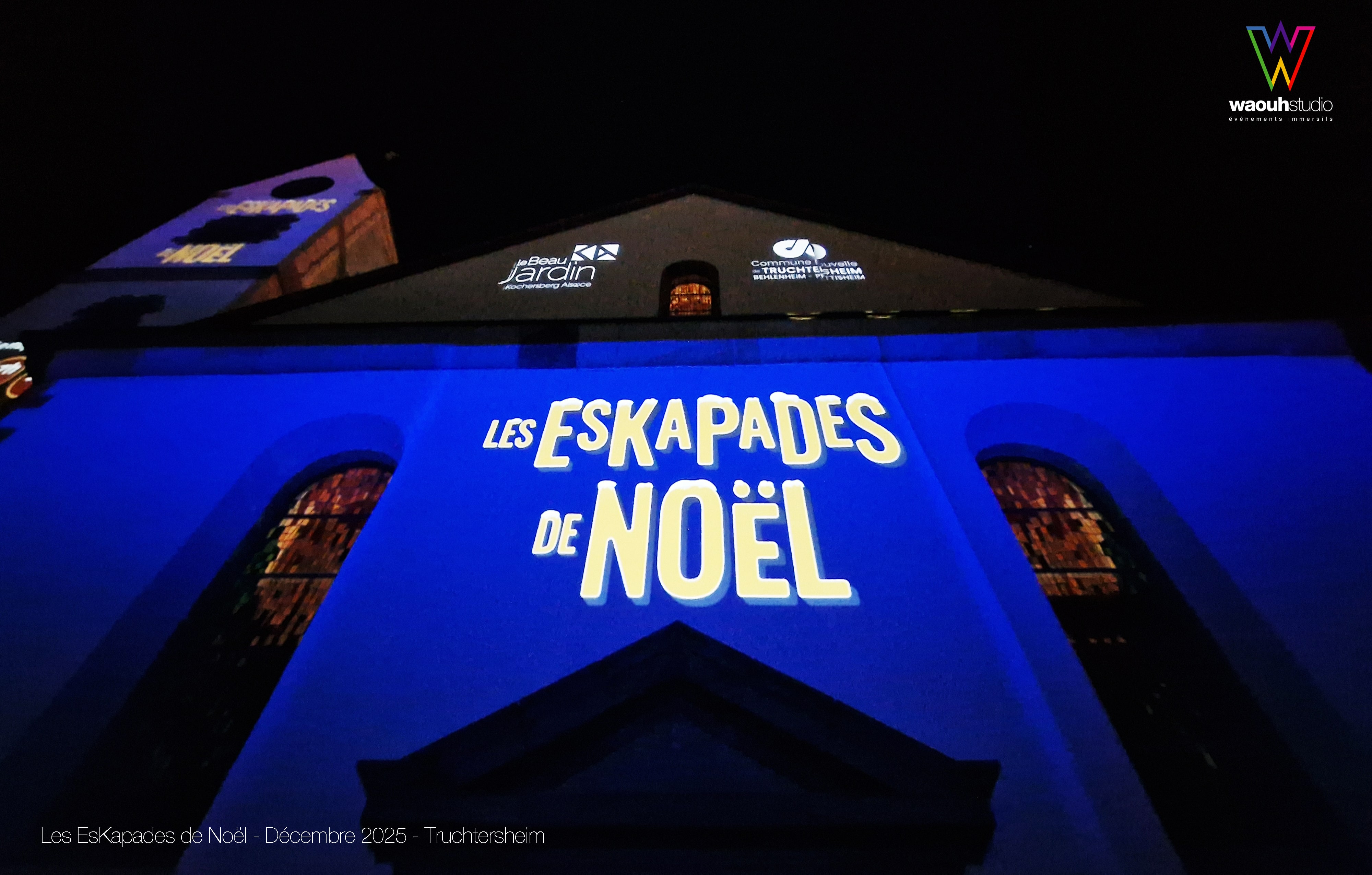 A l’occasion des fêtes de Noël, nous lançons notre premier grand mapping architectural lors des EsKapades de Noël à Truchtersheim. Un spectacle son, lumière et vidéo alliant storytelling et scènes dynamiques pour une expérience immersive captivante !