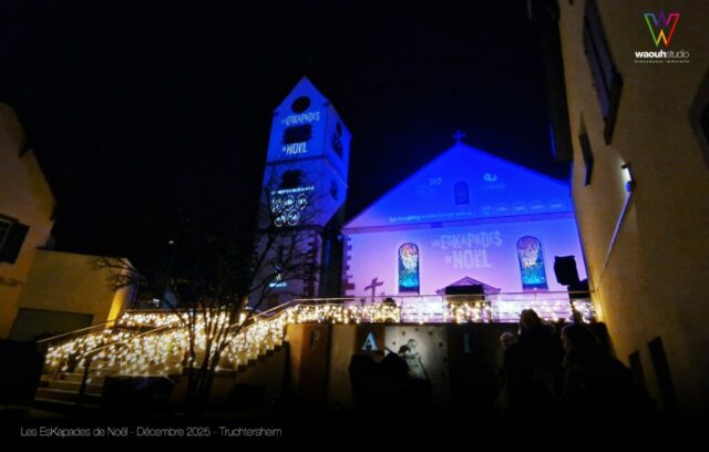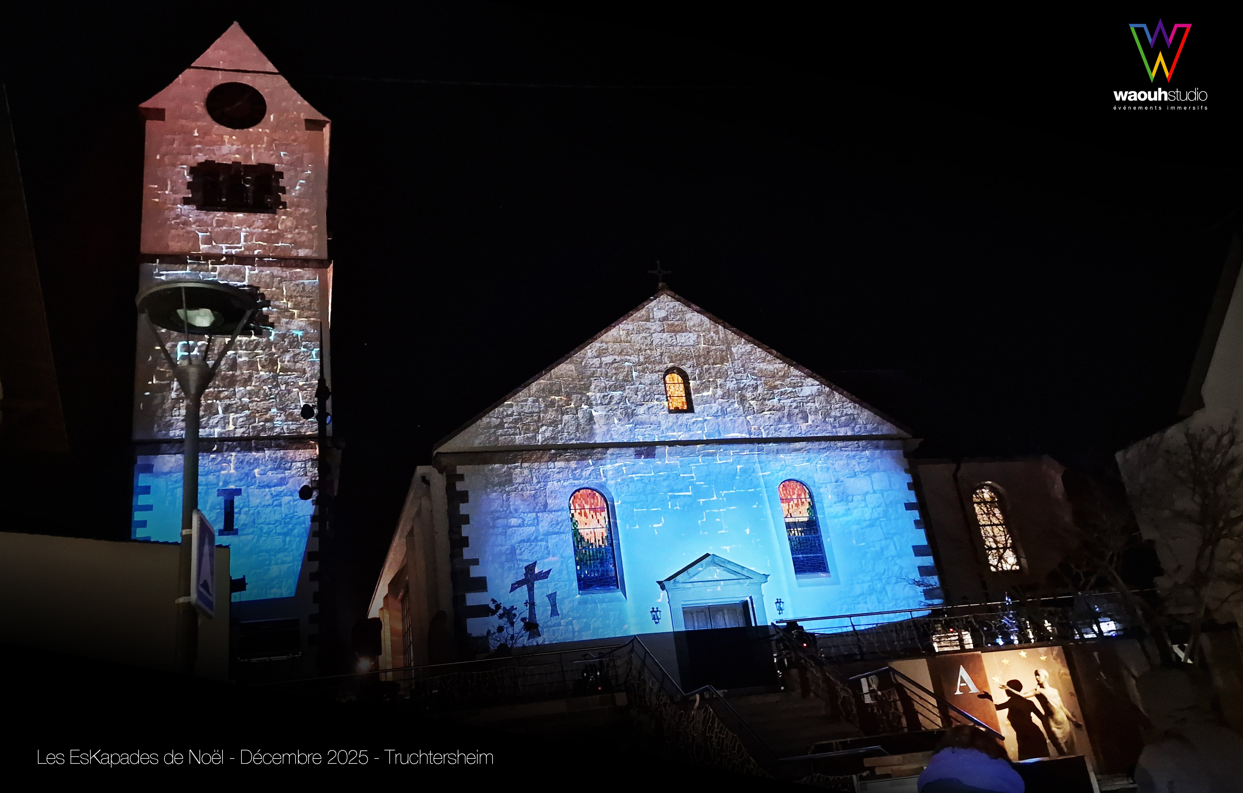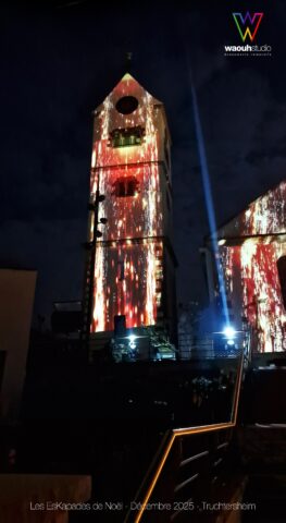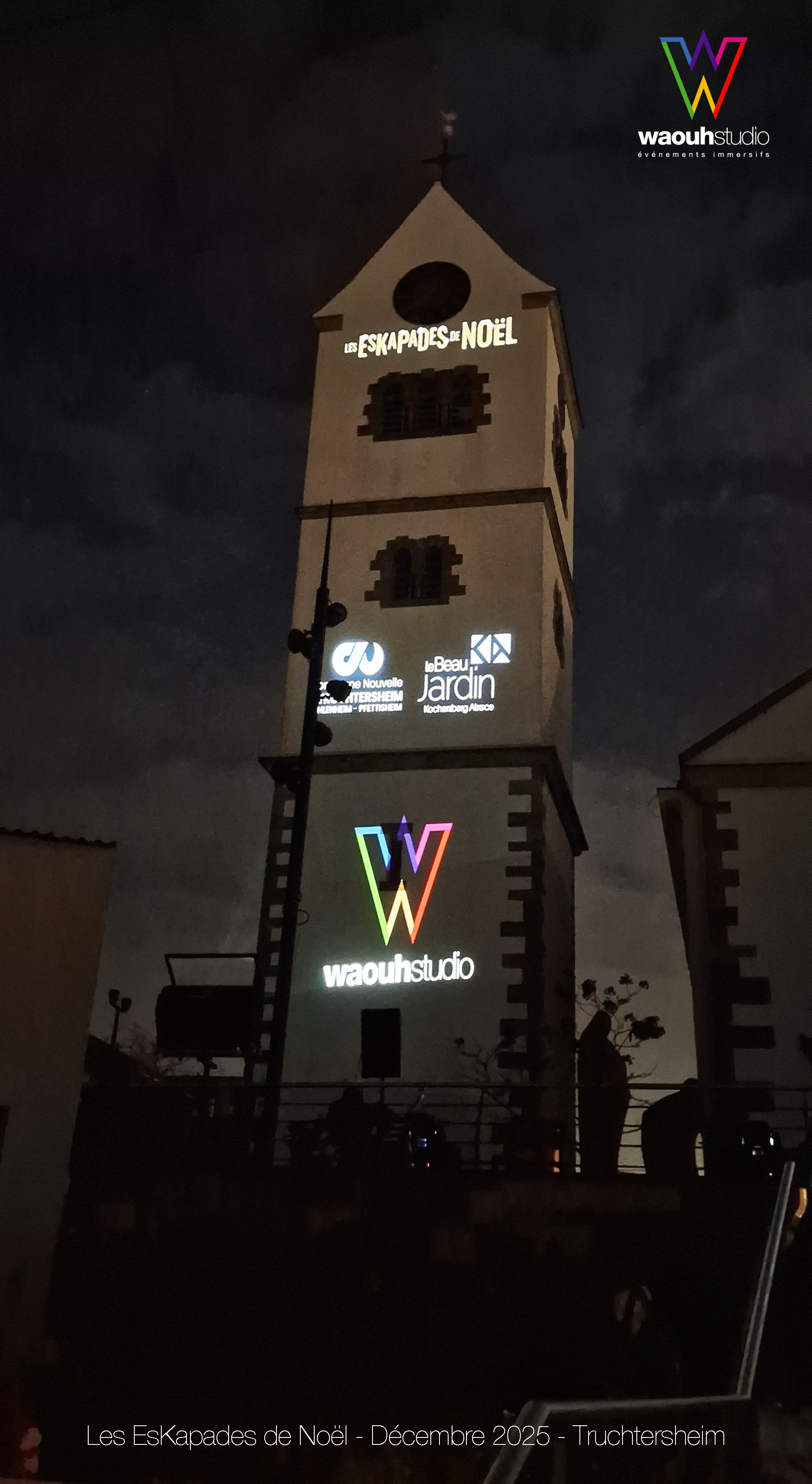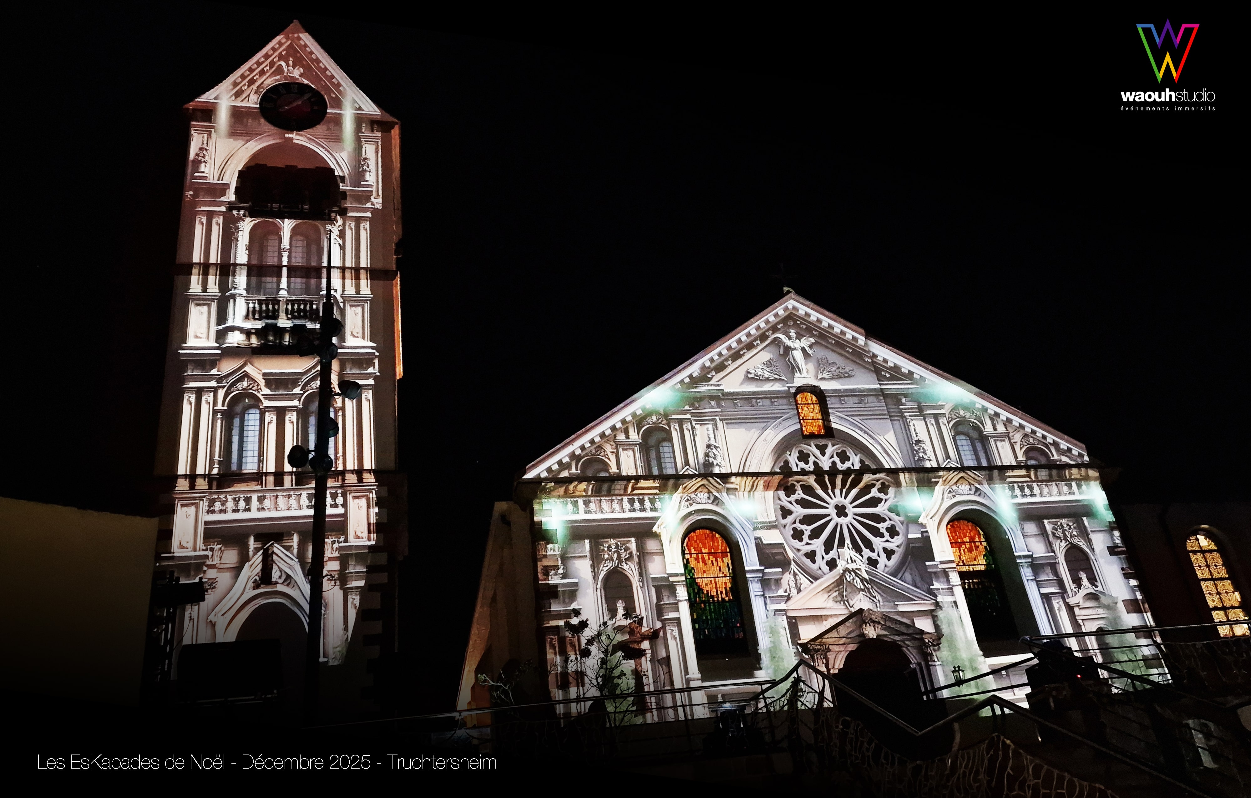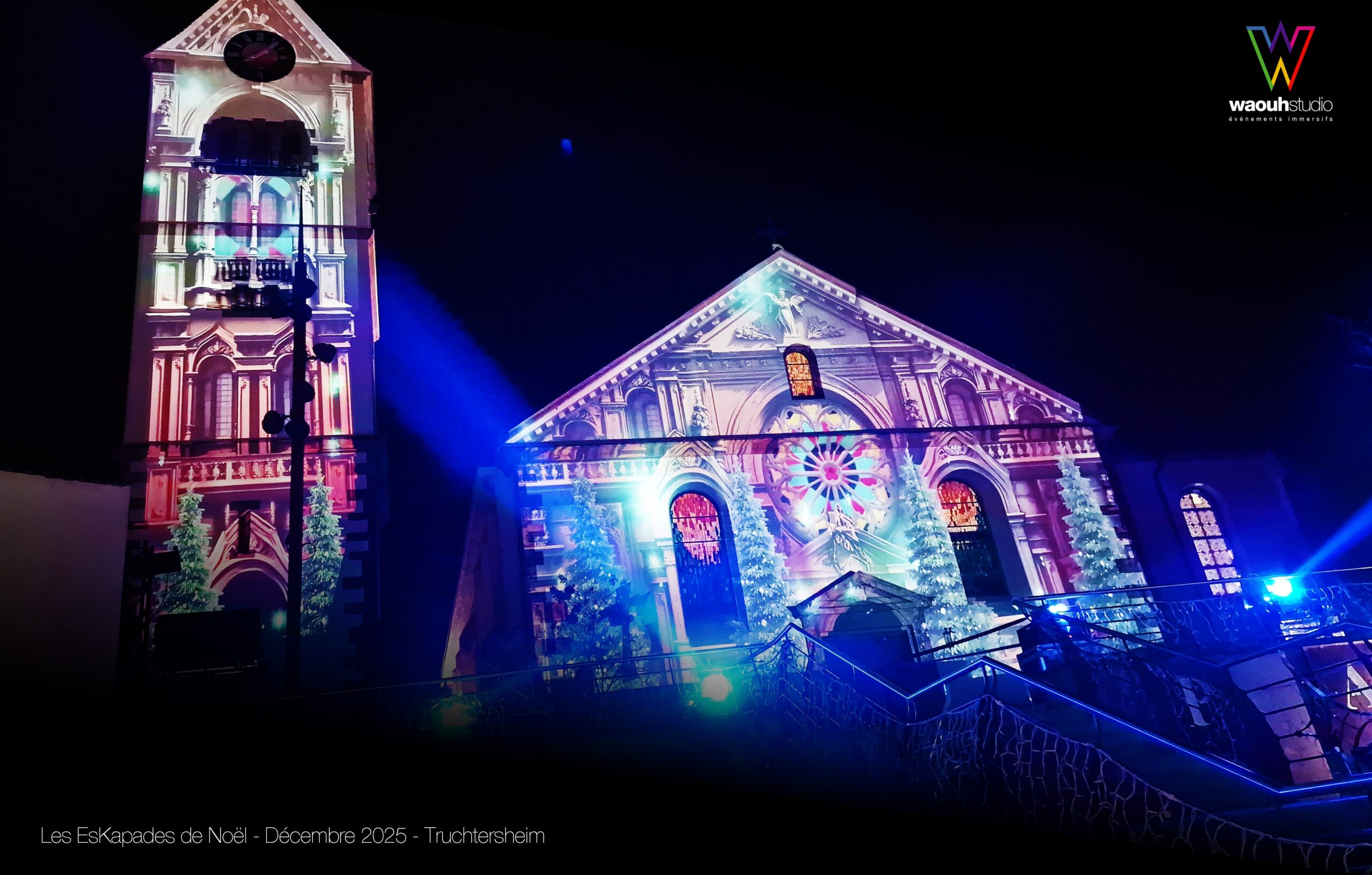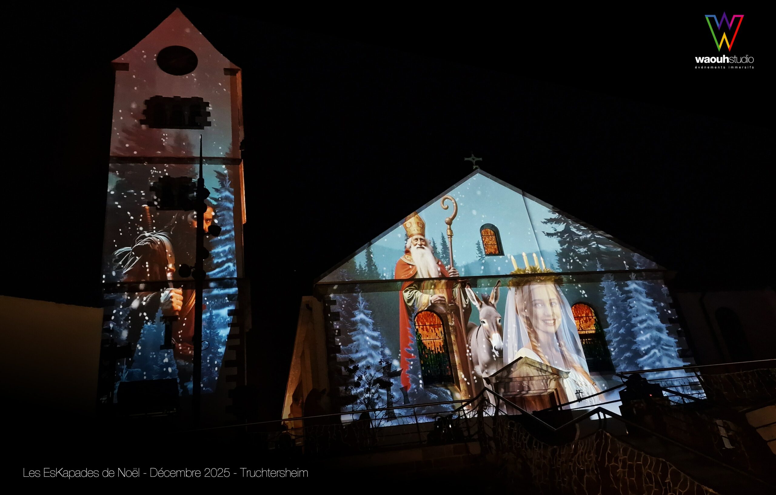 A l’occasion des fêtes de Noël, nous lançons notre premier grand mapping architectural lors des EsKapades de Noël à Truchtersheim. Un spectacle son, lumière et vidéo alliant storytelling et scènes dynamiques pour une expérience immersive captivante !